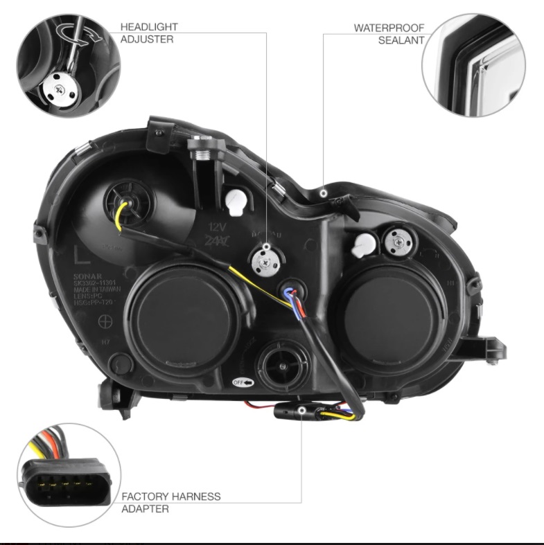 W203 `00 Head Lamp Projector Chrome W/Motor